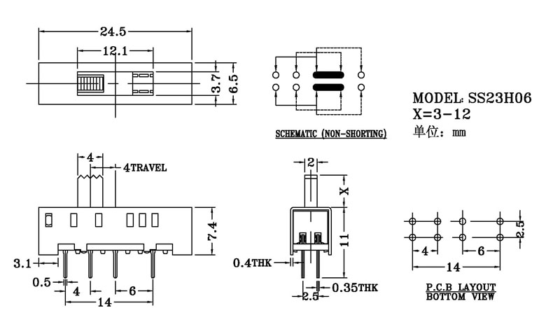 微型撥動開關技術參數: