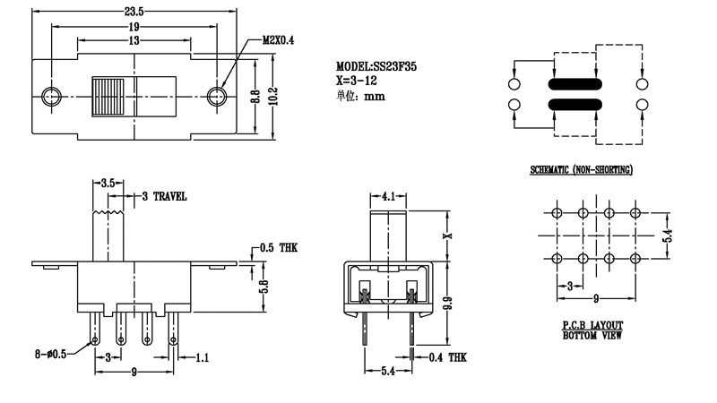 微型撥動(dòng)開關(guān)技術(shù)參數(shù):