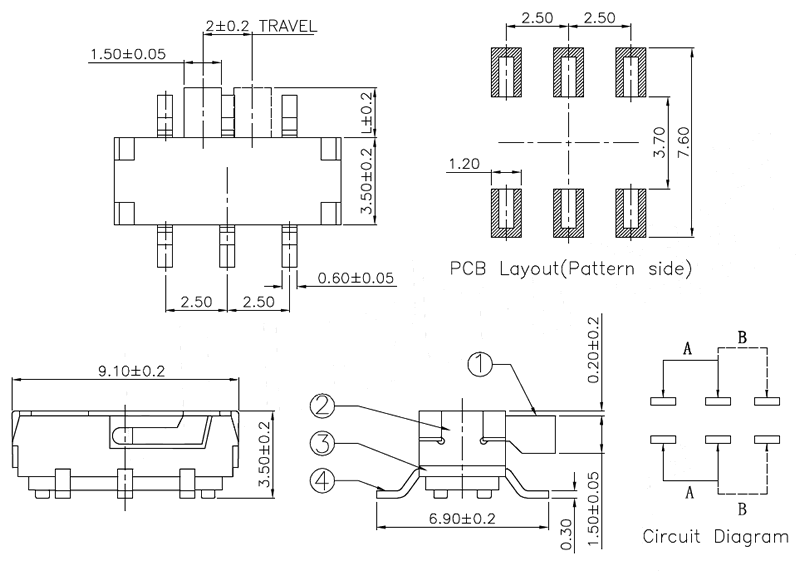 微型撥動(dòng)開關(guān)技術(shù)參數(shù):