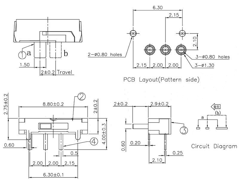 微型撥動開關(guān)技術(shù)參數(shù):