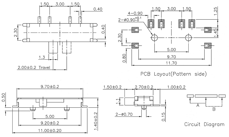微型撥動(dòng)開(kāi)關(guān)技術(shù)參數(shù):